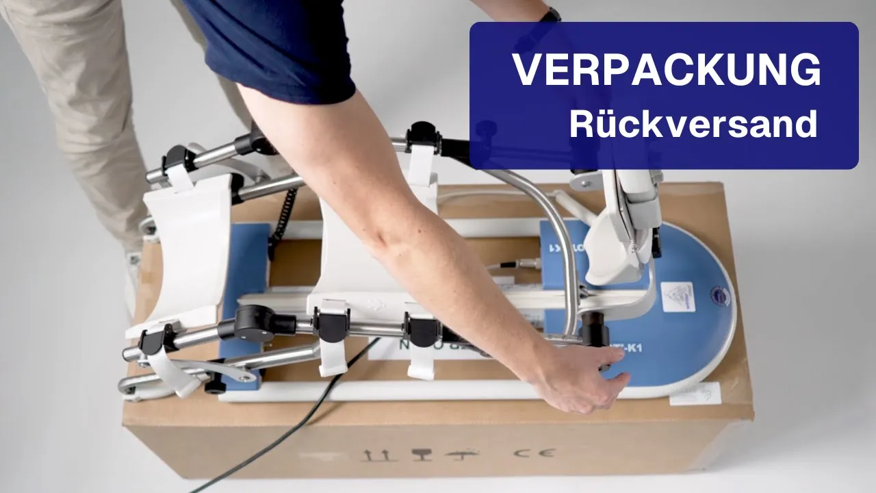 Dieses Video zeigt Schritt für Schritt, wie Sie die ARTROMOT K1 korrekt verpacken und für den Rückversand vorbereiten. So gelingt die Rücksendung einfach, sicher und ohne unnötigen Aufwand.